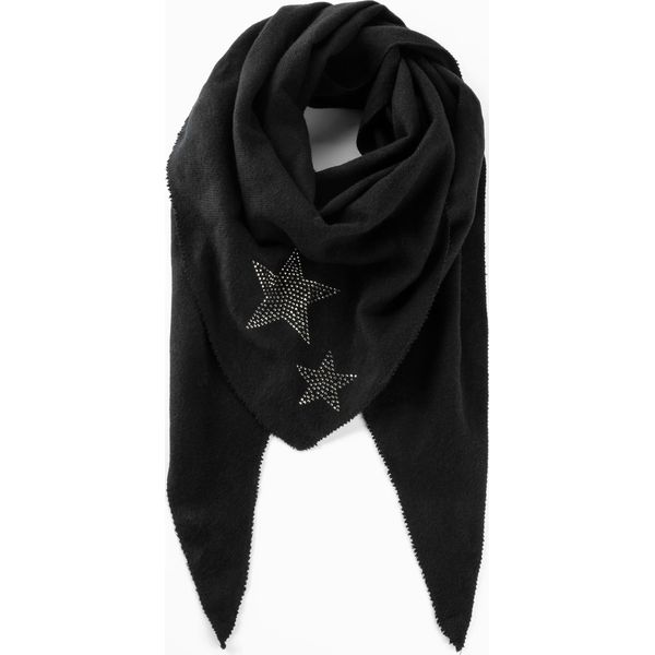 Zimowa chusta trójkątna w gwiazdy. Miękka chusta trójkątna z ozdobnymi kamieniami, chroniąca przed zimnem chłodną porą roku.