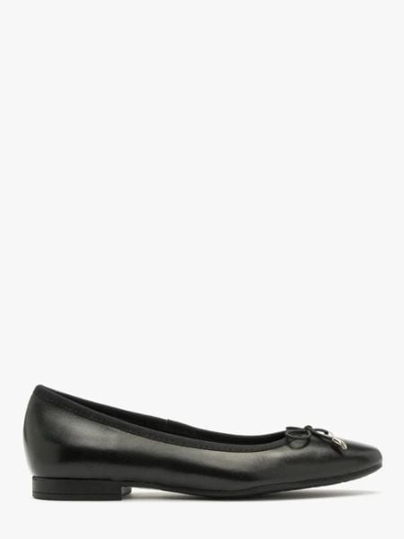Czarne baleriny z kokardką na cholewce z linii RYŁKO.Model wykonany ze skóry licowej.Podszewka i wyściółka skórzana.Podeszwa płaska.Nosek okrągły.Model posiada ozdobne elementy w kolorze srebrnym.Dystrybutor: Brawo Sp. z o.o. ul. Dworcowa 19, 34-130 Kalwaria Zebrzydowska; [email protected] pochodzenia: POLSKA
