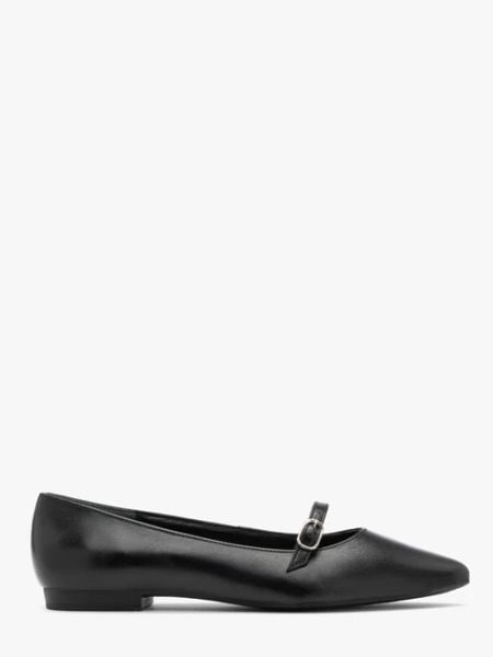 Czarne baleriny z noskiem w szpic oraz paskiem