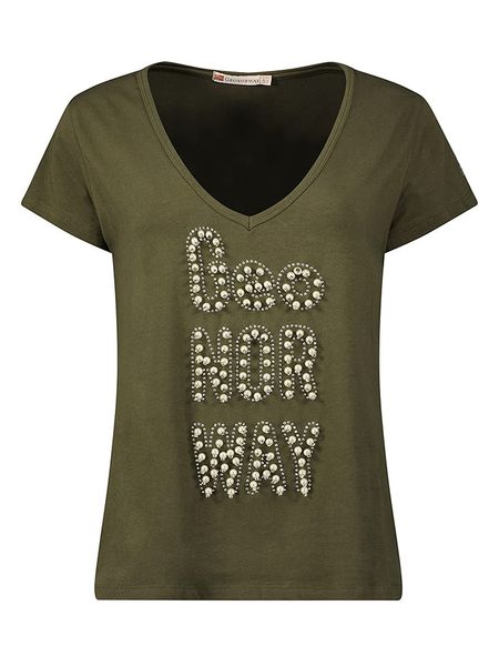 – dekolt: V- detale: ozdobne koraliki- krój: prosty- nadruk: logo- look: jednokolorowy