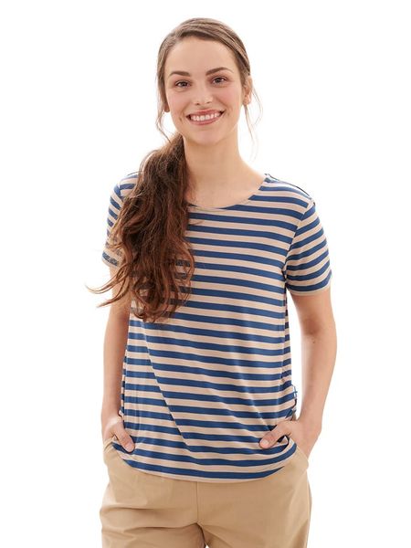 – dekolt: okrągły- krój: prosty- nadruk: paski