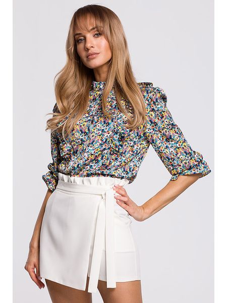 – kołnierz: stójka- zapięcie: listwa guzikowa- rękaw: bufiasty- długość rękawa: półdługi- krój: prosty- wzór: kwiatowy