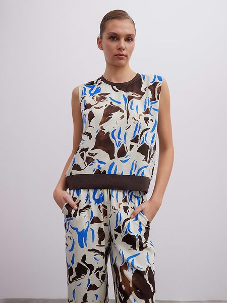 – czysta wiskoza- ramiączka: szerokie- dekolt: okrągły- krój: prosty- wzór: na całościUwaga: Przy wyborze właściwego wariantu zaleca się korzystanie z tabeli rozmiarów.