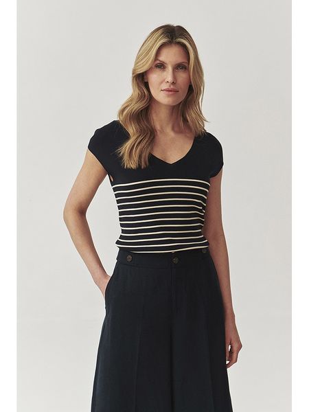– dekolt: V- krój rękawów: motylek- krój: prosty- wzór: paski