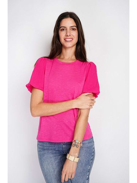 – dekolt: okrągły- rękaw: bufiasty- krój: prosty- look: jednokolorowyUwaga: Na metkach odzieży tej marki znajdują się rozmiary francuskie. Rozmiarówka została przez nas przeliczona. Podane do wyboru warianty rozmiarów odpowiadają standardowym europejskim rozmiarom konfekcji. Prosimy zapoznać się z zamieszczonym objaśnieniem rozmiarów.
