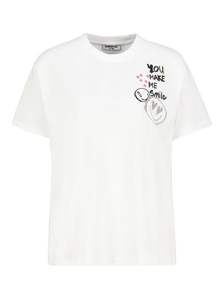 – czysta bawełna- dekolt: okrągły- krój: oversized- nadruk: graficzny- look: jednokolorowy