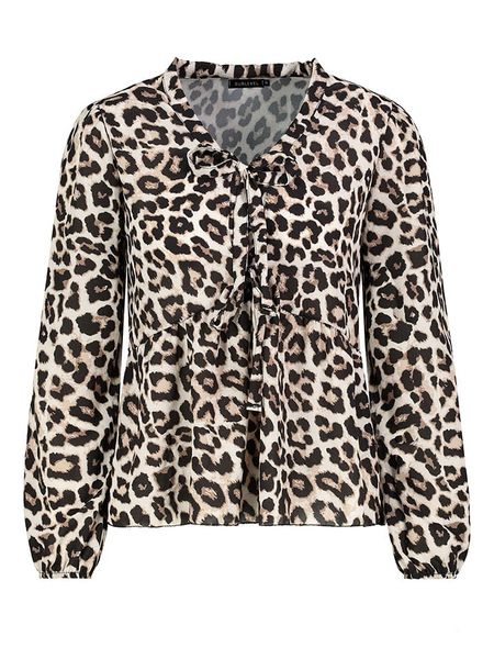 – dekolt: V- rękaw: bufiasty- zakończenie rękawów: elastyczne- detale: ozdobne wiązanie- krój: prosty- wzór: panterka