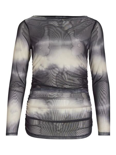 – dekolt: okrągły- krój: wąski- wzór: przejście kolorów- wykończenie: delikatnie prześwitujące