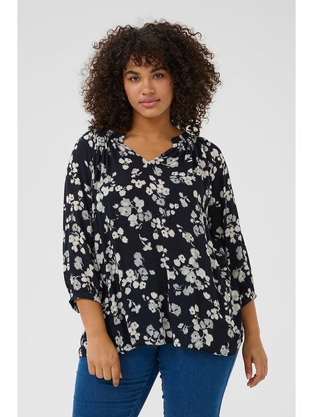 – czysta wiskoza- dekolt: z rozcięciem- rękaw: bufiasty- zakończenie rękawów: elastyczne- długość rękawa: 3/4- krój: prosty- wzór: kwiatowy