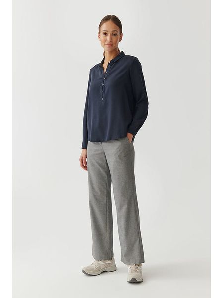 – czysty lyocell- kołnierz: kent- zapięcie: skrócona listwa guzikowa- zakończenie rękawów: guzik- dolny brzeg: zaokrąglony- krój: prosty- look: jednokolorowy