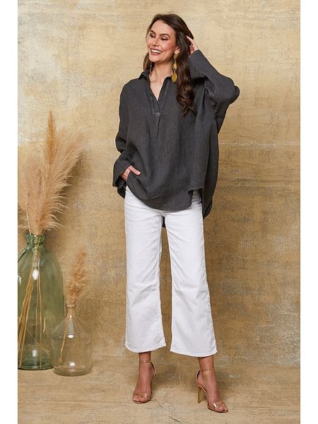 Fleur de Lin Lniana bluzka „Dola” w kolorze antracytowym rozmiar: L