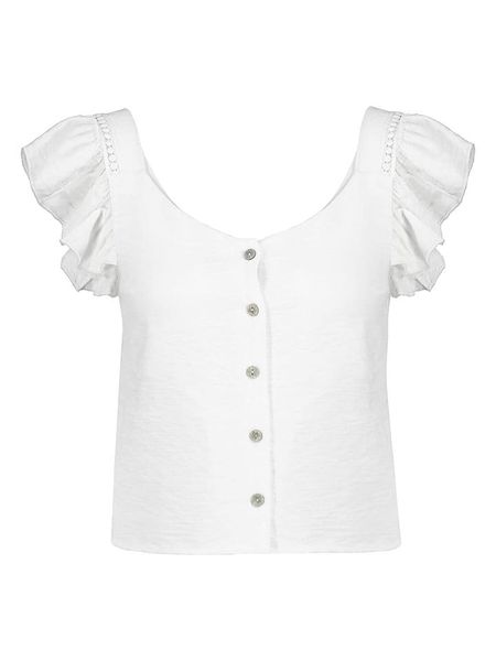 – dekolt: okrągły- zapięcie: listwa guzikowa- krój rękawów: motylek- krój: prosty- detale: szydełkowana koronka- look: jednokolorowy