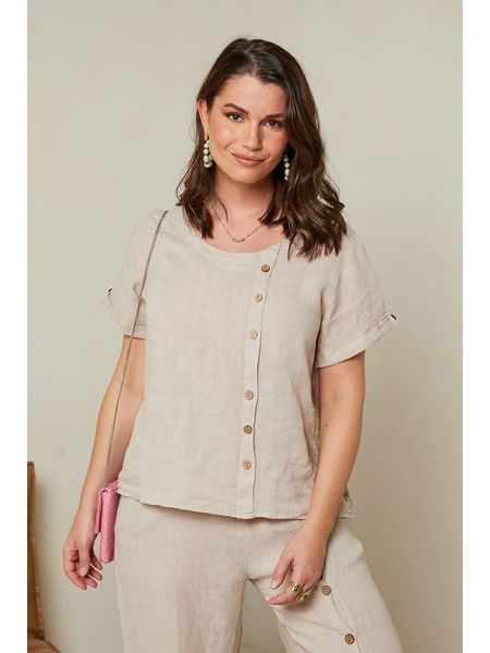 Curvy Lady Lniana koszulka w kolorze beżowym rozmiar: 48/50