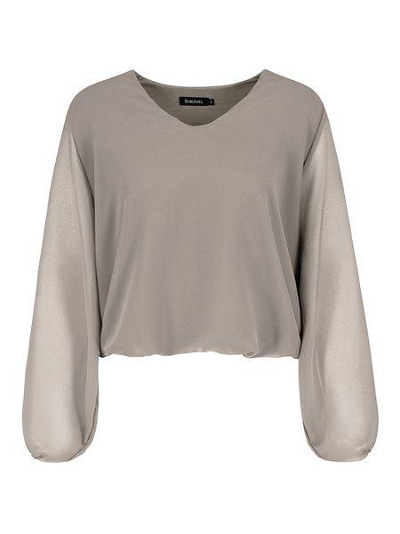 – dekolt: V- rękaw: bufiasty- zakończenie rękawów: elastyczne- dolny brzeg: elastyczny – krój: prosty- look: jednokolorowy