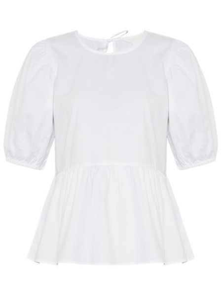 – czysta bawełna- dekolt: okrągły- zapięcie: wiązanie na plecach- długość rękawa: półdługi- zakończenie rękawów: elastyczne- detale: falbanki- krój: taliowany- look: jednokolorowy