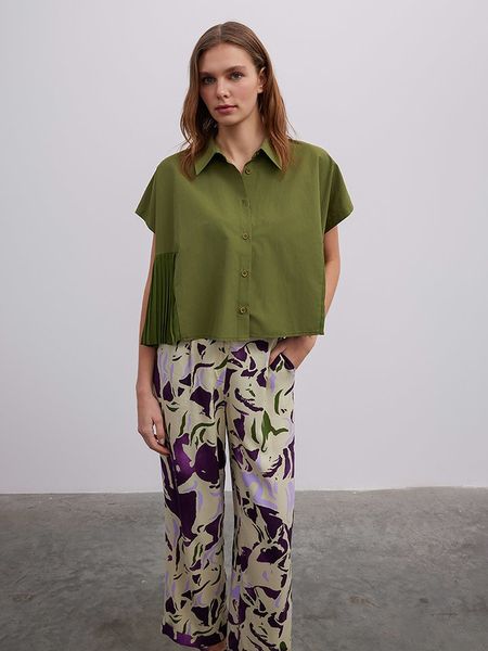 – kołnierz: kent- zapięcie: listwa guzikowa- detale: plisy- krój: luźny- look: jednokolorowyUwaga: Przy wyborze właściwego wariantu zaleca się korzystanie z tabeli rozmiarów.