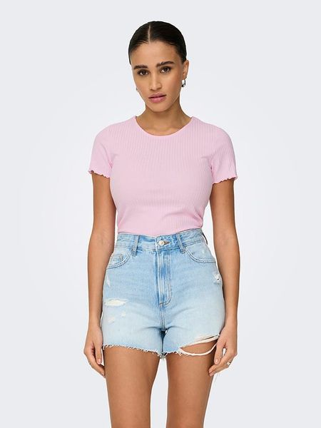 – dekolt: okrągły- zrolowany brzeg: zakończenia rękawów- krój: cropped- look: jednokolorowy, prążkowany