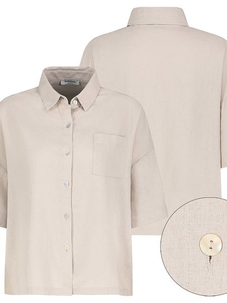 – z dodatkiem lnu- kołnierz: kent- zapięcie: listwa guzikowa- długość rękawa: półdługi- kieszenie: na piersi- krój: luźny- look: jednokolorowy