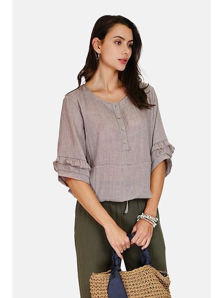 bluzki ze sklepu limango.pl bluzki bez kołnierzyka bluzki z długim rękawem odzież damska le jardin du lin bluzki le jardin du lin bluzki z okrągłym kołnierzem bluzki bez ramiączek brązowe bluzki odzież damska limango.pl szare bluzki