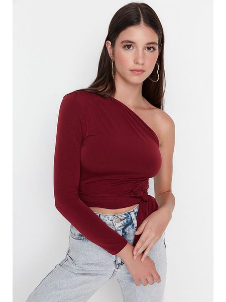 – krój rękawów: na jedno ramię- krój: wąski- detale: ozdobny supełek- look: jednokolorowy