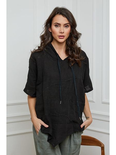 – czysty len- kaptur: ze ściągaczem tunelowym- dekolt: V- długość rękawa: półdługi- krój: prosty- look: jednokolorowy