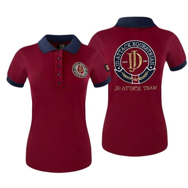 Koszulka polo damska JD ATTACK Pollyanna z krótkim rękawem Ocena: Tags: Sporty Jeździectwo Odzież jeździecka Koszulki i koszule jeździeckie Kolor: Brązowy, Czerwony Rozmiar: 44 L Przeznaczenie: female Marka: JD ATTACK