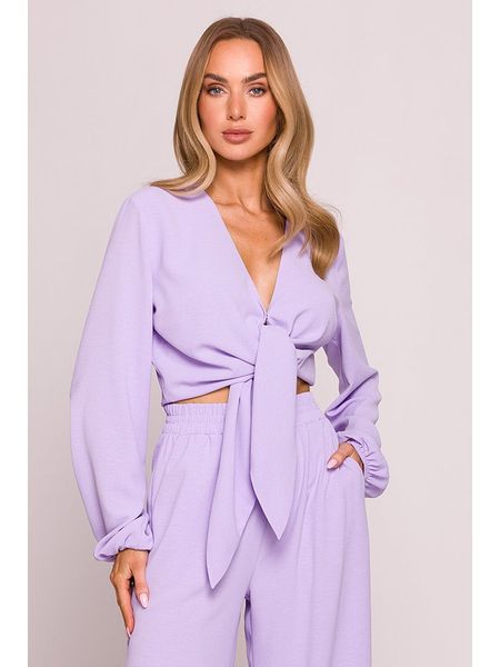 – dekolt: V- zapięcie: zatrzask, wiązane tasiemki- rękaw: bufiasty- zakończenie rękawów: elastyczne- krój: cropped- look: koperta, jednokolorowy