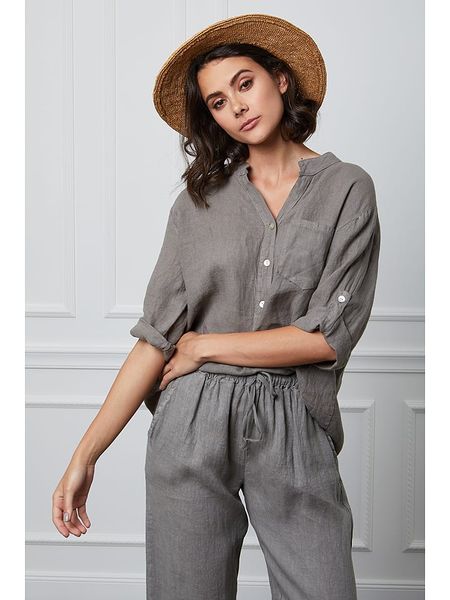 – czysty len- dekolt: z rozcięciem- zapięcie: skrócona listwa guzikowa- zakończenie rękawów: patka i guzik- kieszenie: na piersi- krój: luźny- look: jednokolorowy