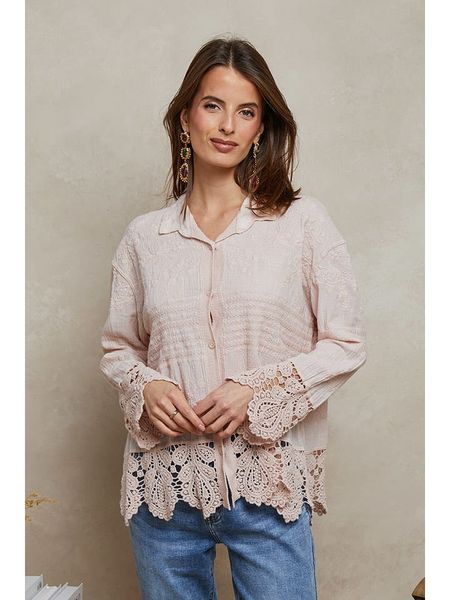 – czysta bawełna- kołnierz: kent- dekolt: V- zapięcie: listwa guzikowa- detale: szydełkowana koronka- krój: luźny- look: jednokolorowy