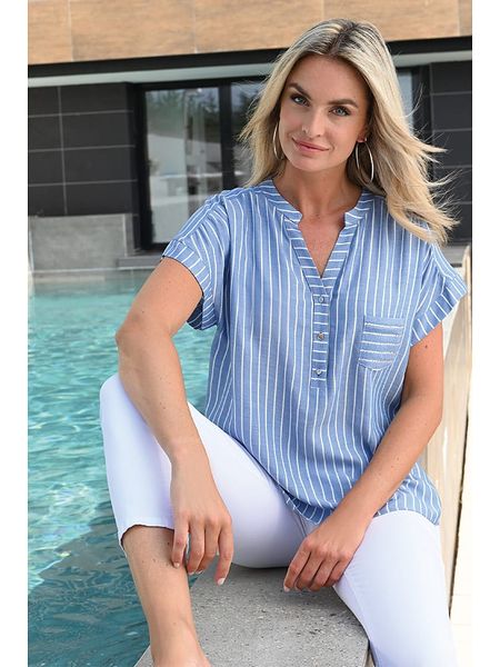 niebieskie bluzki bluzki bez ramiączek odzież damska limango.pl odzież damska bleu d’azur bluzki bleu d’azur bluzki bez kołnierzyka bluzki ze sklepu limango.pl bluzki bez rękawów bluzki z długim rękawem