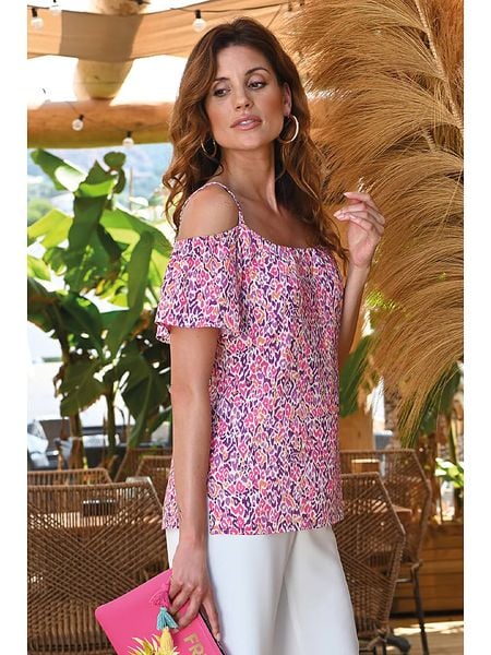 – z dodatkiem lnu- dekolt: okrągły- krój rękawów: motylek – krój: prosty- wzór: panterkaWskazówka: Na metkach odzieży tej marki znajdują się rozmiary francuskie. Rozmiarówka została przez nas przeliczona. Podane do wyboru warianty rozmiarów odpowiadają standardowym europejskim rozmiarom konfekcji. Prosimy zapoznać się z zamieszczonym objaśnieniem rozmiarów: