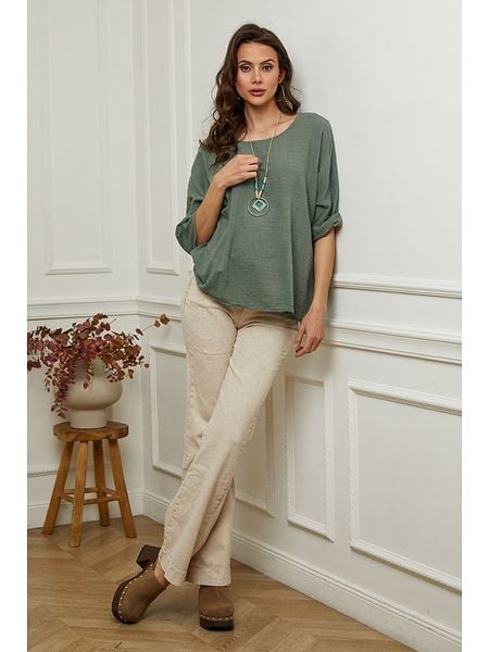 – czysta bawełna- dekolt: okrągły- krój rękawów: nietoperz- długość rękawa: 3/4- krój: luźny- look: jednokolorowy