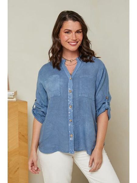 – czysty len- dekolt: V- zapięcie: listwa guzikowa- zakończenie rękawów: patka i guzik- kieszenie: na piersi- detale: cekiny- krój: luźny- look: jednokolorowyWskazówka: Na metkach odzieży tej marki znajdują się rozmiary francuskie. Rozmiarówka została przez nas przeliczona. Podane do wyboru warianty rozmiarów odpowiadają standardowym europejskim rozmiarom konfekcji. Prosimy zapoznać się z zamieszczonym objaśnieniem rozmiarów: