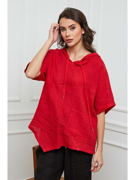 – czysty len- kaptur: ze ściągaczem tunelowym- dekolt: V- długość rękawa: półdługi- krój: prosty- look: jednokolorowy