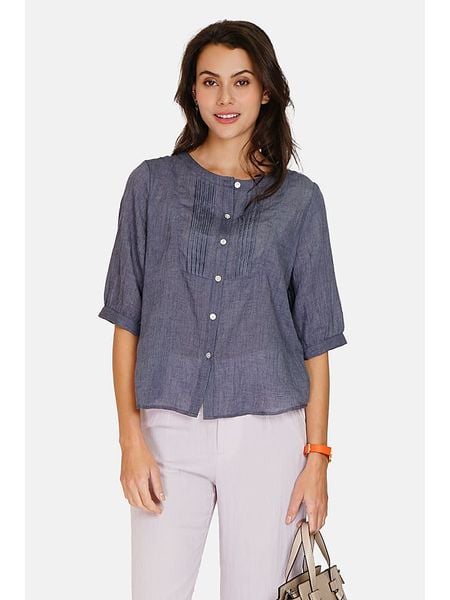 bluzki bez ramiączek bluzki z długim rękawem bluzki bez kołnierzyka bluzki bez rękawów niebieskie bluzki bluzki ze sklepu limango.pl odzież damska le jardin du lin bluzki le jardin du lin odzież damska limango.pl bluzki z okrągłym kołnierzem