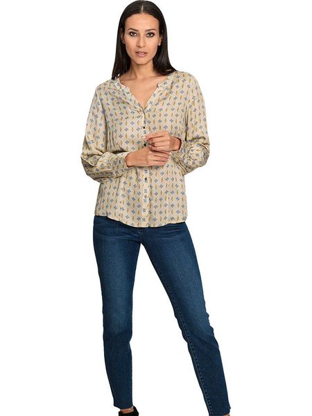 – czysta wiskoza- dekolt: z rozcięciem- zapięcie: listwa guzikowa- zakończenie rękawów: guziki- krój: prosty- wzór: na całości