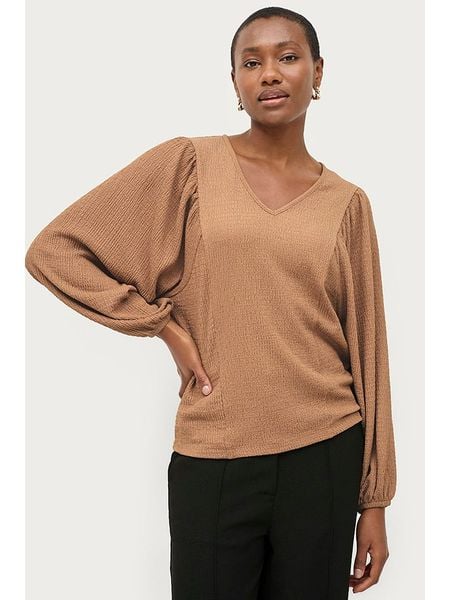– dekolt V- rękaw: bufiasty- zakończenie rękawów: elastyczne- krój: luźny- look: jednokolorowy