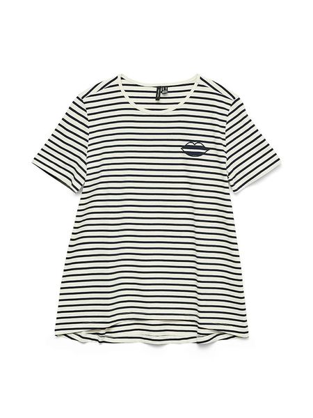 – czysta bawełna organiczna- dekolt: okrągły- detale: haft- krój: prosty- wzór: paski