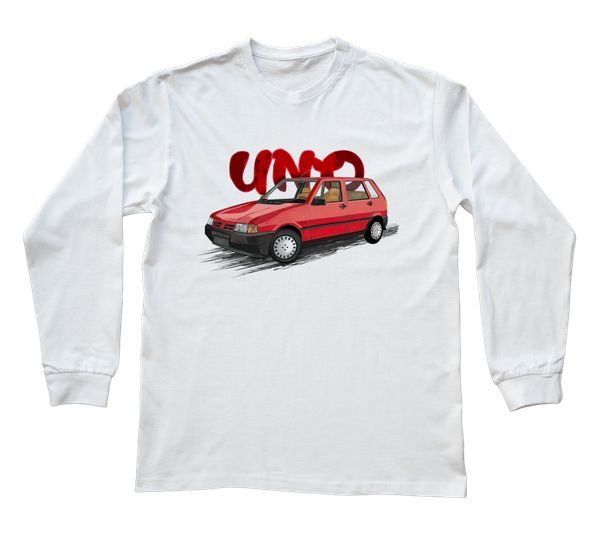 Fiat Uno — bluzka z długim rękawem (Rozmiar: XL (dorosła); Kolor koszulki: biały; Rodzaj nadruku: Fiat Uno)
