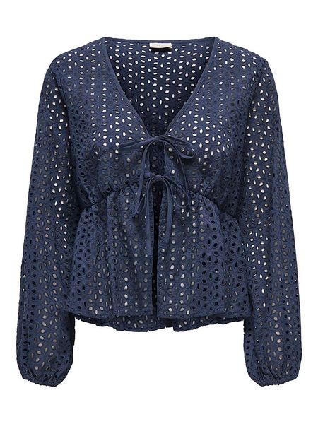 – czysta bawełna- dekolt: V- zapięcie: sznurowanie- talia: elastyczna- zakończenie rękawów: elastyczne- krój: taliowany- wzór: dziurkowany