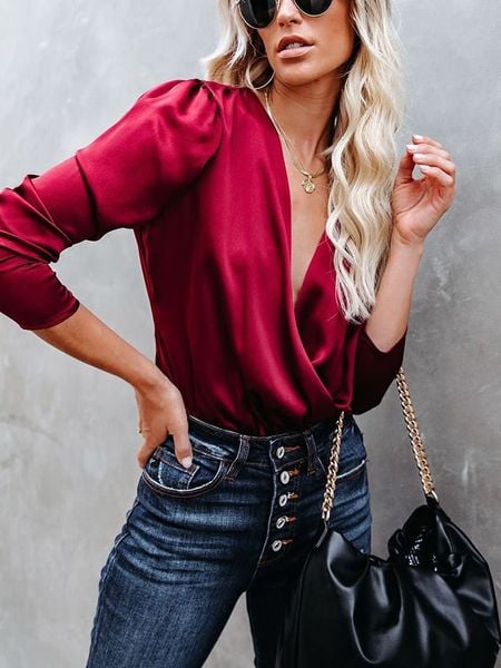 – dekolt: V- krój: luźny- look: jednokolorowy, koperta
