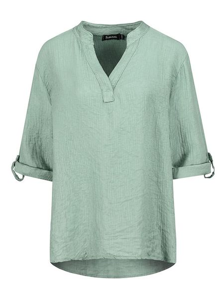 – kołnierz: stójka- dekolt: V- zakończenie rękawów: patka i guzik- krój: prosty- dolny brzeg: zaokrąglony- detale: ozdobna zakładka- look: jednokolorowy