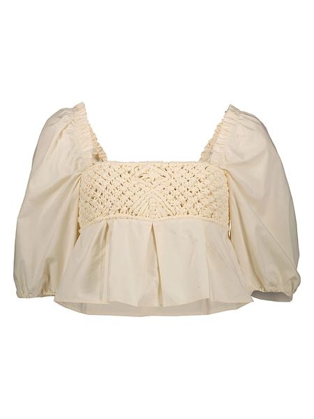 – czysta bawełna- dekolt: karo- zakończenie rękawów: elastyczne- rękaw: bufiasty- detale: falbanki, szydełkowana koronka- krój: cropped- wzór: mix