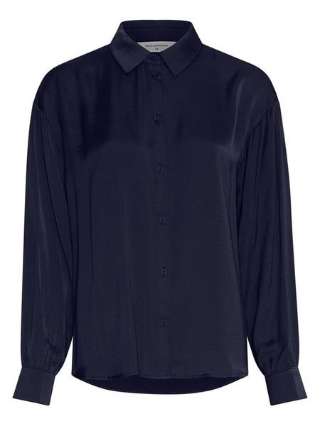 – z dodatkiem poliestru pochodzącego z recyklingu- kołnierz: kent- zapięcie: listwa guzikowa- krój rękawów: bufiasty- zakończenie rękawów: guziki- dolny brzeg: zaokrąglony- krój: prosty- look: jednokolorowy