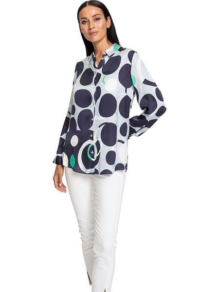 – kołnierz: kent- zapięcie: listwa guzikowa- zakończenie rękawów: mankiet na guzik- krój: luźny- wzór: graficzny