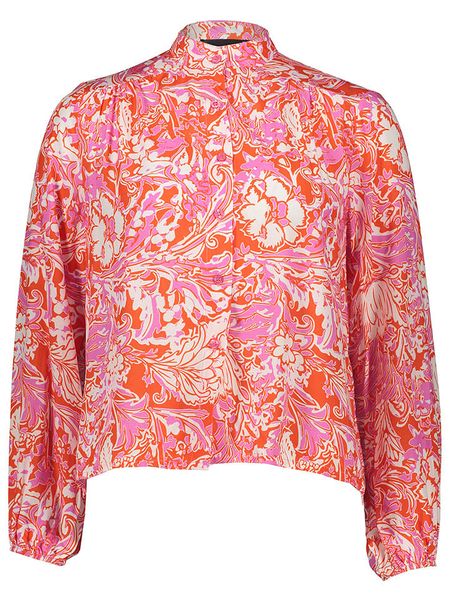 – czysta wiskoza- kołnierz: stójka- zapięcie: listwa guzikowa- rękaw: bufiasty- zakończenie rękawów: elastyczne- krój: prosty- wzór: kwiatowy