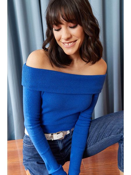 bluzki olalook bluzki bez ramiączek bluzki z dekoltem w łódkę bluzki z długim rękawem bluzki bez kołnierzyka bluzki ze sklepu limango.pl niebieskie bluzki odzież damska limango.pl bluzki bez rękawów odzież damska olalook