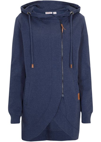 Wygodna bluza z kapturem i zapięciem na kryty zamek. Całkowita dł. w rozm. 40/42 ok. 82 cm. Można prać w pralce.