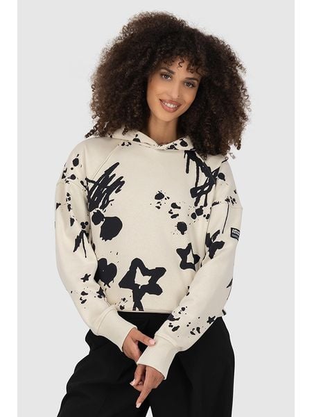 – z dodatkiem bawełny- kaptur: tak- ściągacz: zakończenia rękawów, dolny brzeg- detale: nakładane rękawki- krój: luźny- wzór: na całości