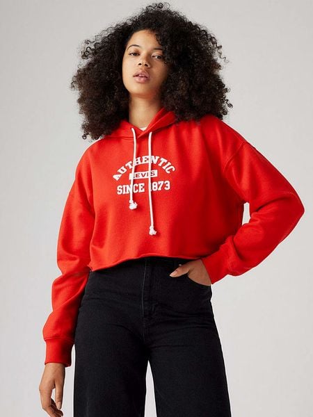 – kaptur: ze ściągaczem tunelowym- rękaw: bufiasty- krój: cropped- nadruk: w formie napisu- look: jednokolorowy